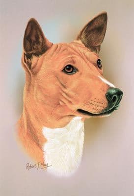 Basenji head study giclee print from an original gouache painting by Robert J. May.