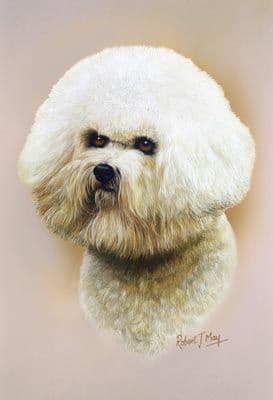 Bichon Frise head study giclee print from an original gouache painting by Robert J. May.