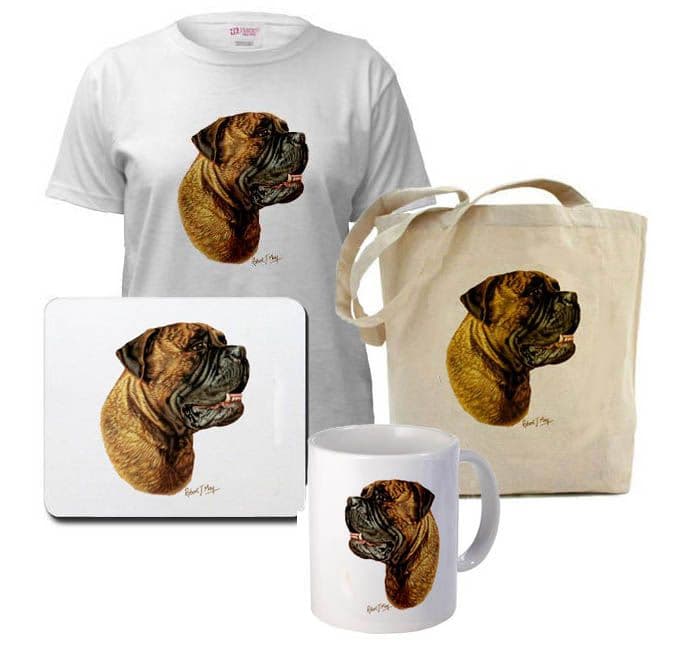 Bullmastiff head study giclee print from an original gouache painting by Robert J. May.