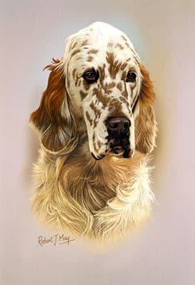 English Setter head study giclee print from an original gouache painting by Robert J. May.