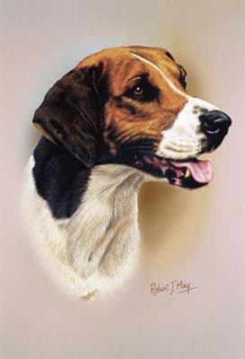 Foxhound head study giclee print from an original gouache painting by Robert J. May.