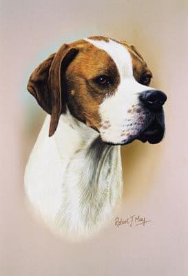 Pointer head study giclee print from an original gouache painting by Robert J. May.