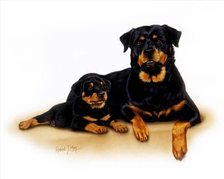 Rottweiler & Pup Giclee print from an original painting by Robert J. May.