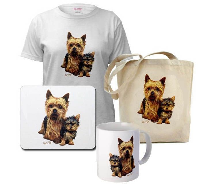 Yorkshire Terrier & Pup giclee print from an original gouache painting by Robert J. May.